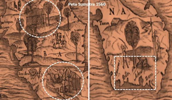 Ada dua peta pada era Portugis: peta yang dibuat oleh kartograder Italia Giovanni Battista Ramusio (terbit 1560) dan peta yang dibuat oleh kartografer Jerman Sebastian Munster (terbit 1598). Giovanni Battista Ramusio diduga kuat menggunakan sumber-sumber Portugis/Spanyol. Sebastian Munster besar dugaan juga telah menggunakan sumber-sumber Belanda. Sebagaimana diketahui ekspedisi Belanda pertama ke Hindia Timur yang dipimpin Cornelis de Houtman dimulai pada tahun 1595 dari pelabuhan Texel dan tiba di Enggano/Lampong dan Banten pada tahun 1596. Ekspedisi Belanda pertama ini kembali ke Belanda tahun 1597. Lalu setahun kemudian terbit peta Sumatra yang dibuat seorang Jerman Sebastian Munster (terbit 1598).